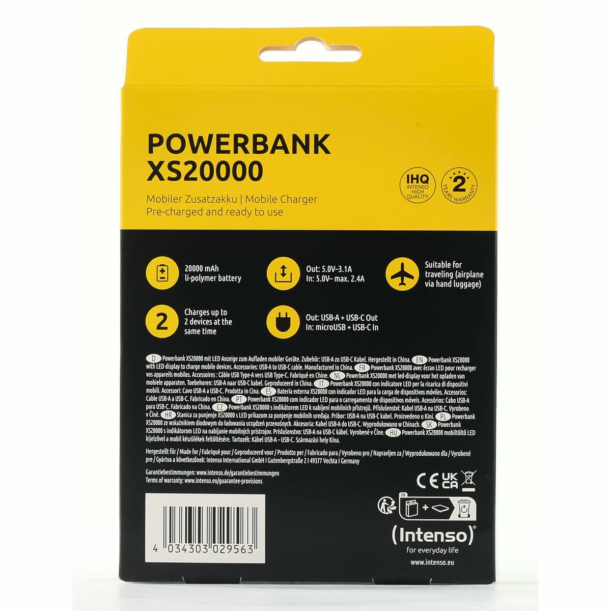 Powerbank INTENSO Noir 20000 mAh au meilleur prix.